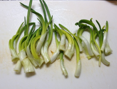 皮の部分を外す。わけぎみたい。少し食べてみたらネギがわりに使えそう。