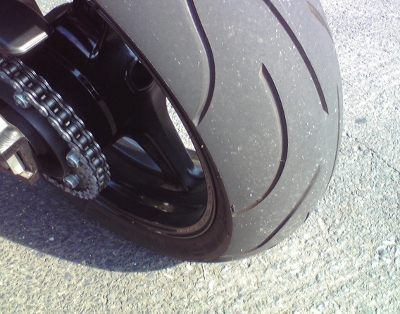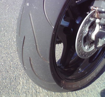 走りだしてすぐにタイヤの感じが前回までとかなり違うのに気がついた。路面温度が高いせいだろうか、いつもよりがっちり食いつく。ちょっと面白くなってペタペタ倒して走る。