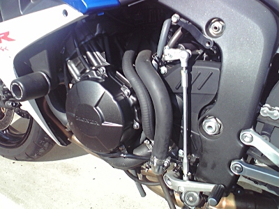 アンダーカウルを外すときに細かい小石がポロポロと落ちてきた。それなりに汚れないよう気を使って走っていても、こういう小石の巻き込みはどうしようもないんだよね。俺のカラーリングからCBR600RRはエンジンがカウルでフルカバーされちゃったので、エンジンとは初のご対面だ。