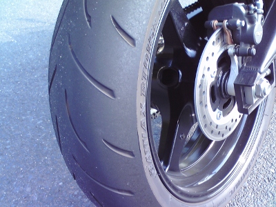 リアはパワーをかけたときにタイヤがつぶれるんだろうか、それなりに端まで使えている。このくらいの暑さになると路面温度も高いのかタイヤがネバネバしてきて面白い。分かる人はわかるだろうけど、タイヤ表面がてれっとしているのは走りもてれっとしているから。要は少しバンクさせているだけでなーんにもしていない走りってこと。安全運転してるってことでひとつよろしく。