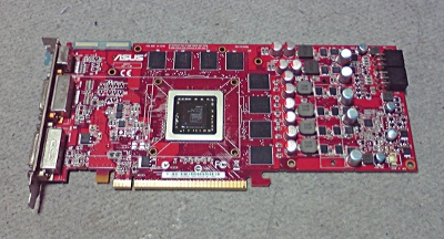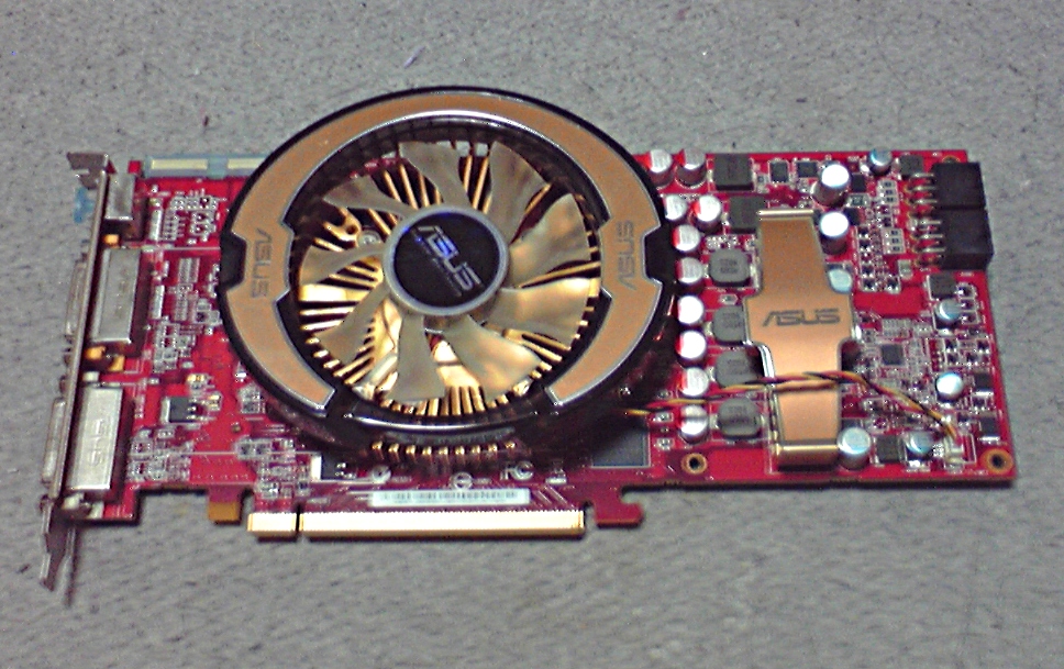 まずはマシンからHD4870を外す。このHD4870はASUSのやつなので、ASUSお得意のでっかいFANが付いている。