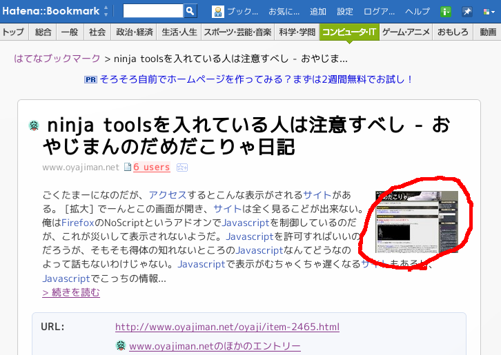 いままで気がつかなかったんだが、はてなブックマークに掲載されているスクリーンショットってIE6のエンジンみたいなのを使っているのかもしれん。
