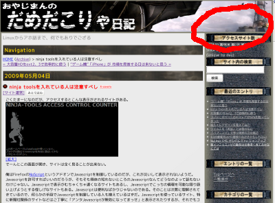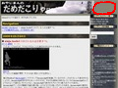 このスクリーンショット、良く見ると右上の方に画像が表示されていない部分がある。スクリーンショットだけを引き伸ばしてみると、それがはっきりとわかる。赤丸の部分がそうで、このように表示されるのはIE6だけである。