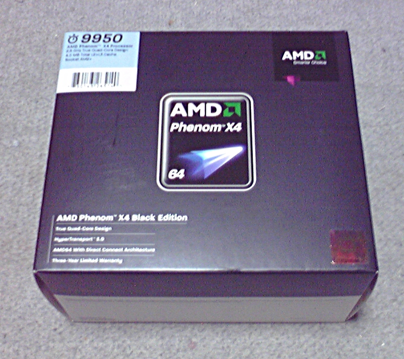 ということでついにPhenom買っちゃった。それも9950 Black Edition。Phenomの中では一番高クロックだけど、値段にすればすでに2万円を切っていて性能の割には安いってところだろう。後数ヶ月もすればキャッシュが大きくなった新しいPhenomが出るらしいが、それまで待っても最新鋭のバカ高パーツなんて買える訳じゃないから迷わず購入した。