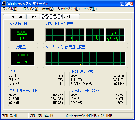 すっげー。ほんとに4CPUだ。こんなマシンが俺の手元にあるとは信じられん。ほんの10数年前なんてデュアルCPUでさえ夢のまた夢だったし、5〜6年前でもデュアルCPUのマザーボードはほとんどお目にかかる機会さえなかったのに、いまじゃ4CPUだよ、1ソケットだけど。
