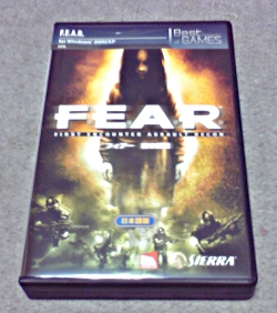 FarCryはどうにかクリアしたので、次なるゲームF.E.A.R.を購入した。実はこのゲーム、近くのバシカメに4800円くらいで置いてあったのでそれを買うつもりでいたのだが、先日行ってみると既に無くなっていた。以前見たときには数本置いてあったので、一斉に売れてしまったとは考え難い。在庫整理の対象になったのかも知れん。