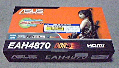 買ったのはASUSのEAH4870/HTDI/512M。価格は3万円をちょっと切っていた。シングルチップのハイエンドとしては結構安い。まぁ、安いから買おうと思ったのだけれども。