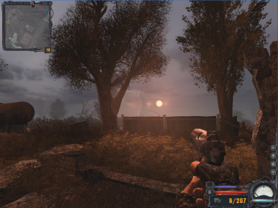 さて、このClearSky、俺のマシンではデフォルトだとかなり重い。仕方が無いのでEnhanced full dynamic lightingをfull dynamic lightingに変更する。ああ、悲しいけどガタガタじゃ仕方ないよなぁ。それでも映像は前作よりさらにきれいになった感じ。特に夕日のシーンは思わず息を呑んだ。