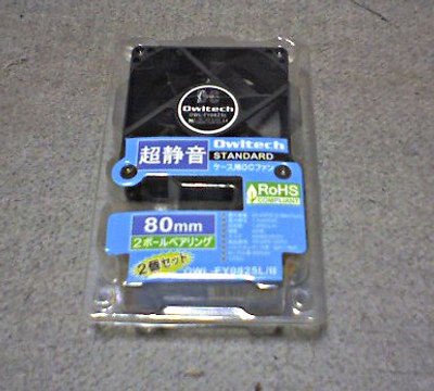 まぁ、すでに一応の完成を見ているわけですが、どうせだからケースFANもつけましょか。ということでFANを買ってきます。FANはフロントに1個、リアに2個の合計3個つけられます。フロントはねじ穴は8cm幅ですが、もう少し大きいのも付きそうなのでこれを購入。