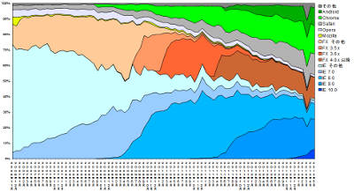 1位 IE9 19.0%(前月▲1.8%)、2位 chrome 17.9%(前月▲0.7%)、3位 FX4以降 13.7%(前月▲0.1%)、4位 safari 13.6%(前月+0.4%)、5位 android 11.7%(前月+0.9%)、6位 IE8 10.3%(前月▲0.2%)
