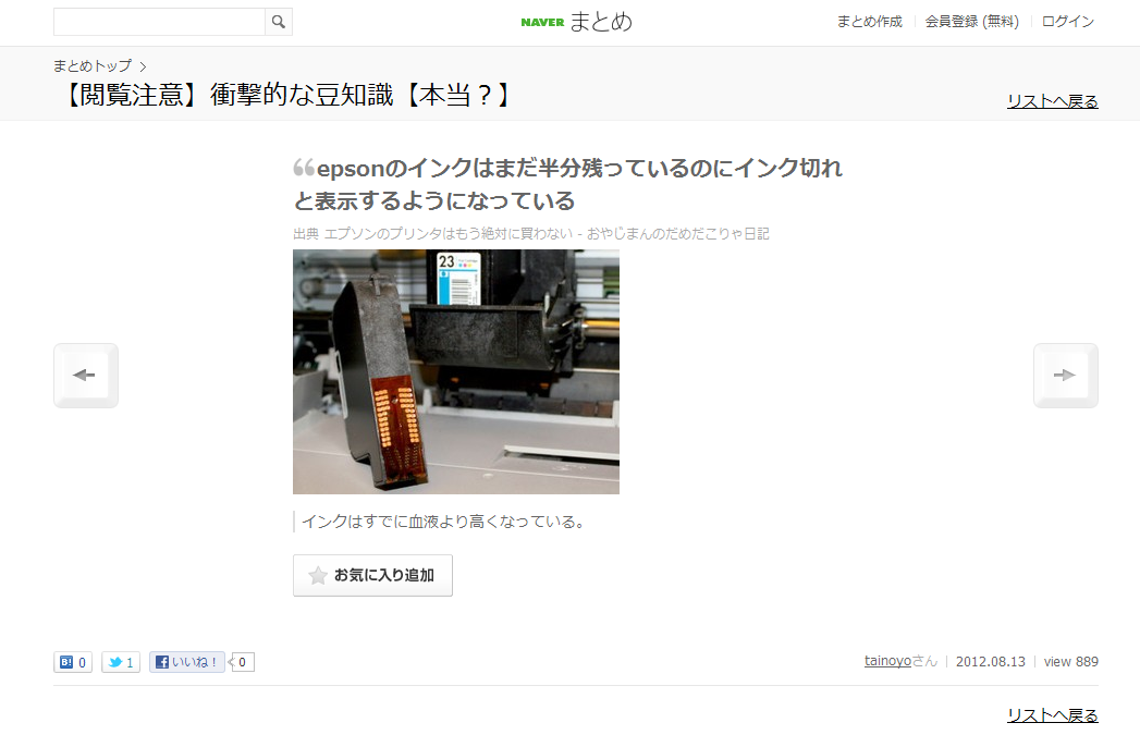 アクセスログでちょっと目についたのだが、NEVERまとめの【閲覧注意】衝撃的な豆知識【本当?】とかいうところに、俺が昔書いたエントリを出典としてこんなことが書かれてあった。