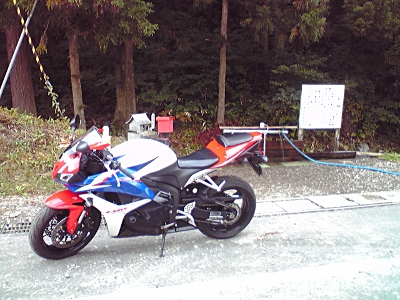 出かける前にタイヤの空気圧をチェック。最近は一週間で前後とも0.1kgf/cm2くらいづつ落ちている事が多い。今日も前が2.4kgf/cm2、後ろが2.8kgf/cm2になっていたので定圧にまで空気を入れる。台風とかの風の影響だろうか、磨いておいたホイルに水はねの跡が残っていた。それだけでなく、なんとまぁ前後のディスクプレートにサビが浮いているじゃないか。走りだしてブレーキをかければすぐ取れるとはいえ、カバーをかけていても錆びるとは・・・たった一週間なんだけどなぁ。