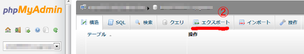 1、 phpMyAdminにログインしたら、左カラムで該当するデータベースをクリック