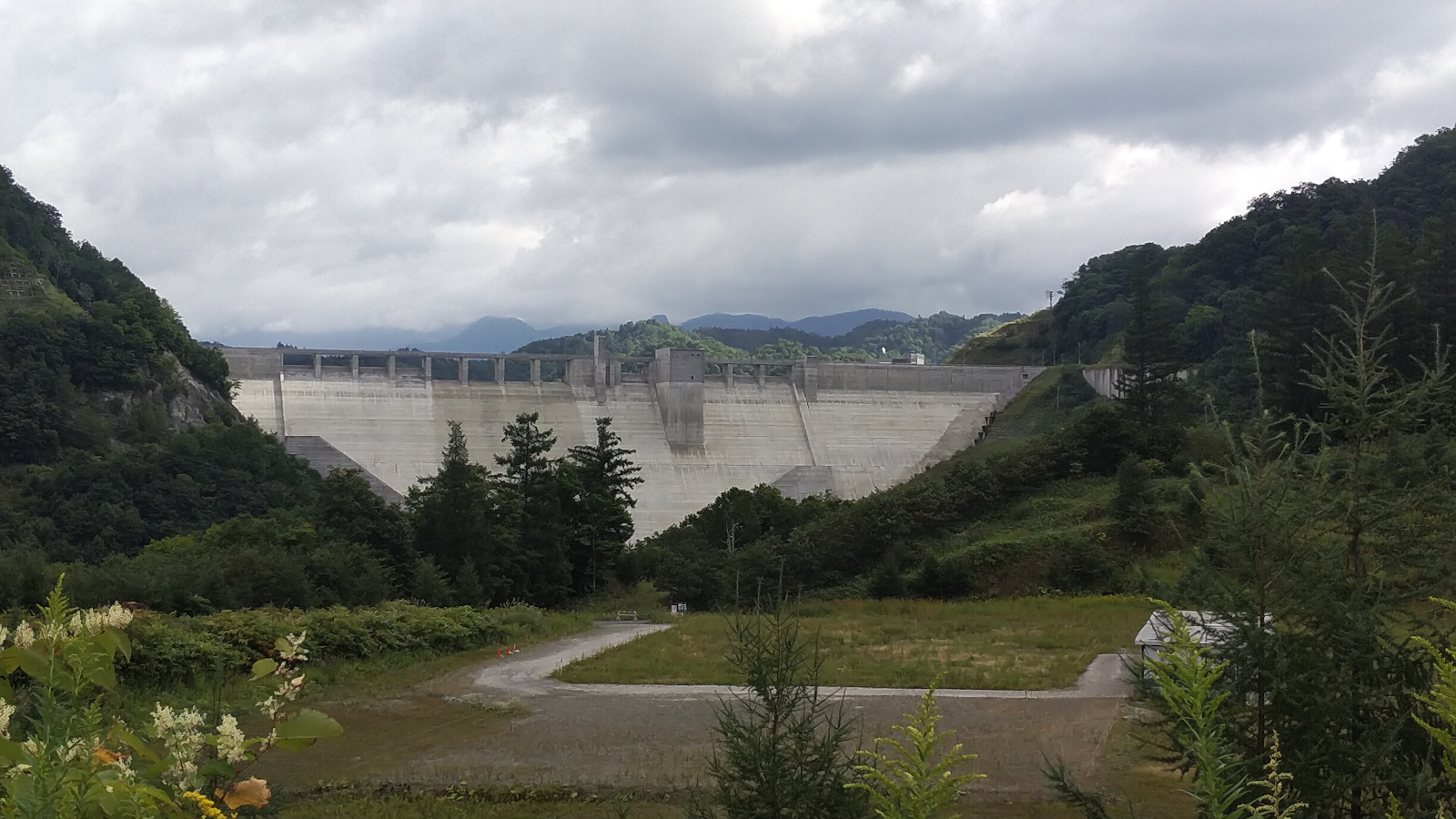杵臼ダムは、栗山ダムから走行距離で10Kmもないところにある。近くまで行ける道路は立ち入り禁止になっている。写真だとただの盛土みたいに見える。