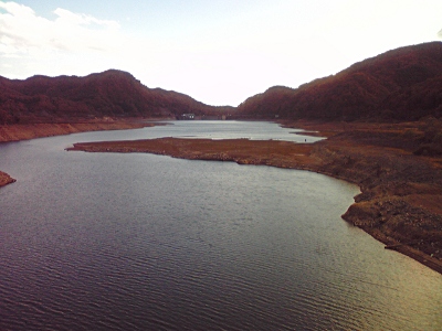 ほぼ2週間ぶりの大倉ダム。今年見た中では多分いちばん水量が少ない。といいつつ、過去の大倉ダムの写真を見てみたら、そもそもこのダムって水が少ない時もけっこう多いね。