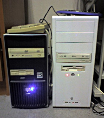 ハードウエアは出来ました。右がK6-2の古フルタワーケースを流用した新マシンです。さぁてOSをインストールしましょう。旧メインマシンでは、ほぼWindowsXPは使わないハズなので新マシンにこのXPをインストールします。