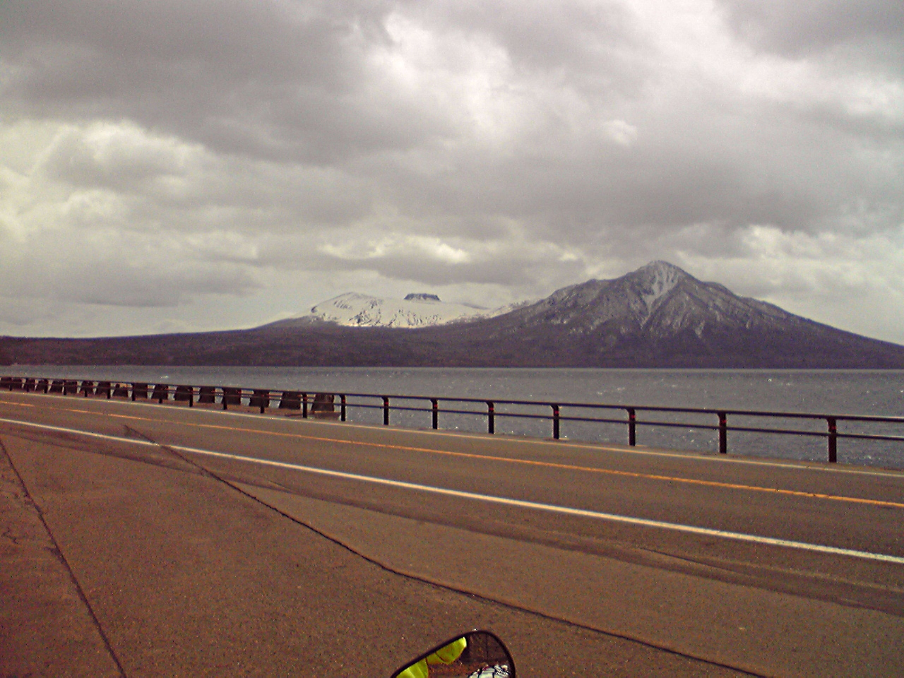 「あー、北海道なんだ」とかしみじみ思いながら走っていたのだが、時より強い風に煽られ気味になったりして我に返る。少し走ると「支笏湖」という標識が出ていた。さっさと札幌までいくか、それとも支笏湖を見てから帰るか、ここで大いに迷う。迷ったが、確か支笏湖方面から札幌までいく道もあったはずだし、そのまま直行も味気ない。ということで支笏湖にいくことに決定。