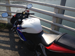 帰ってからマシンを軽く磨いた。北海道は日中でも虫が無茶苦茶飛んでいて、帰ってくると掃除が大変だった。しかし本州は日中は暑さのせいかそんなに虫はいない。だからマシンもそんなに汚れない。これは助かる。磨いたあと半ズボンでマシンに跨ったら、熱くなったフレームに膝の内側をくっつけてしまって熱かった。