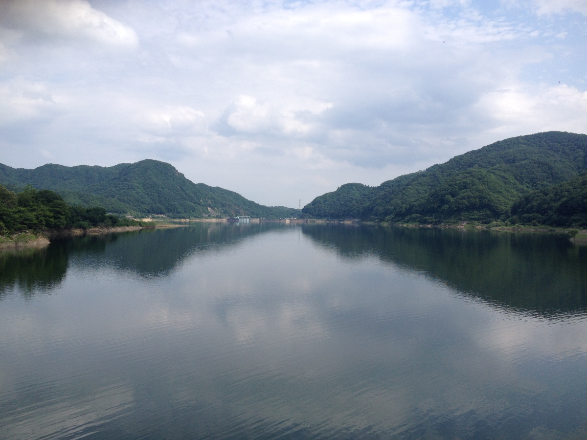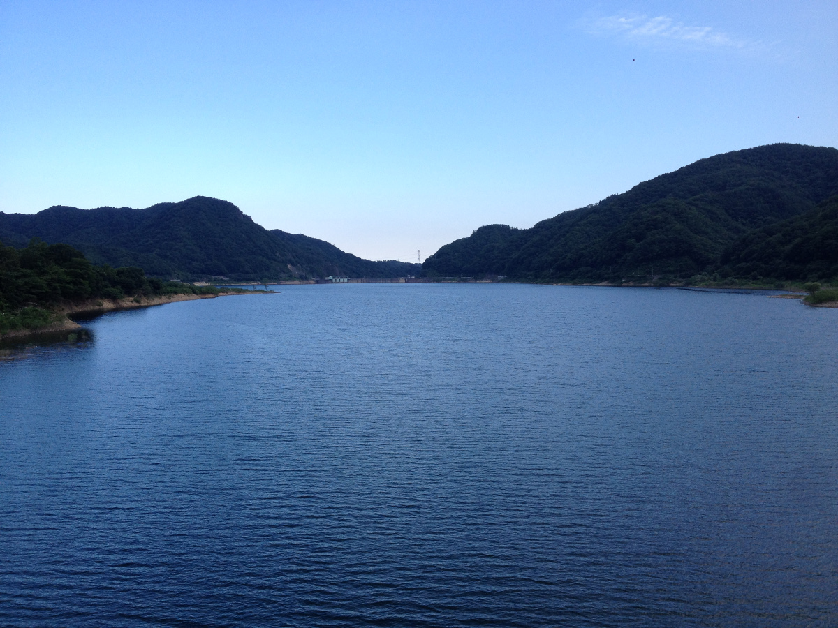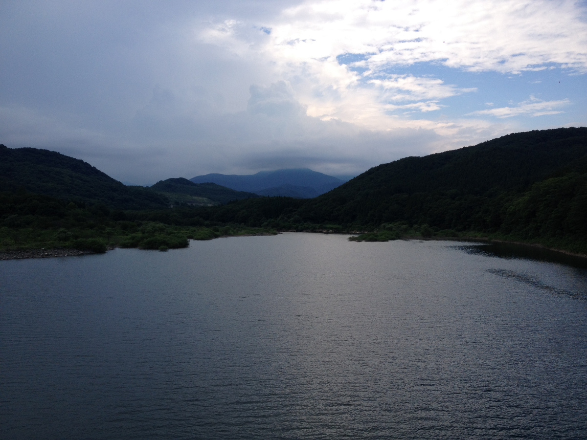 ついに梅雨明けか?上流側とダム側の天気の違いが著しい。今年は水量が多いままな感じ。